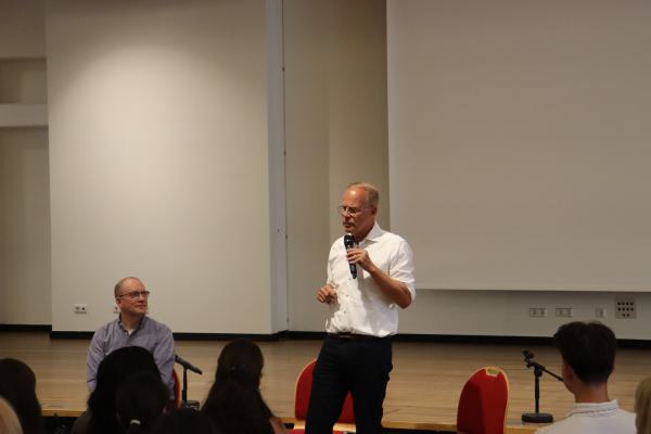 Eine Schülerin fragte Matthias Miersch, was er von der AfD halte. Er antwortete, dass er die Partei möglichst klein halten wolle und auch bereit sei, Kompromisse einzugehen. Seine Partei, die SPD, versuche oft Lösungen zu finden, auch wenn das bedeute, dass sie eigene Positionen etwas zurücknehmen müsse. Miersch erklärte, dass viele Menschen zur AfD wechseln, weil soziale Medien großen Einfluss auf politische Meinungen hätten. Besonders Jugendliche ließen sich oft durch Plattformen wie TikTok oder Instagram beeinflussen. Dort äußere sich z.B. auch die Partei ,,Die Linke“ häufig so, dass viele junge Menschen sich von ihr angesprochen fühlen und sie dann wählen würden.