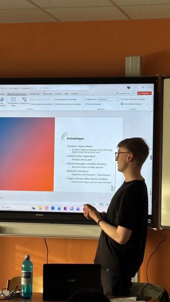 Am 05.11.25 hatten wir die besondere Gelegenheit, in das Leben von Poetry Slammer Matti Linke einzutauchen. Matti wurde von unserem Seminarfach ,,Erinnern statt Vergessen“ eingeladen, um den Schüler:innen einen exklusiven Einblick in diesen kreativen Bereich zu geben. Matti Linkes Einführung in das Thema Poetry Slam war jedoch keineswegs nur ein Vortrag, sondern eine kreative und interaktive Stunde.