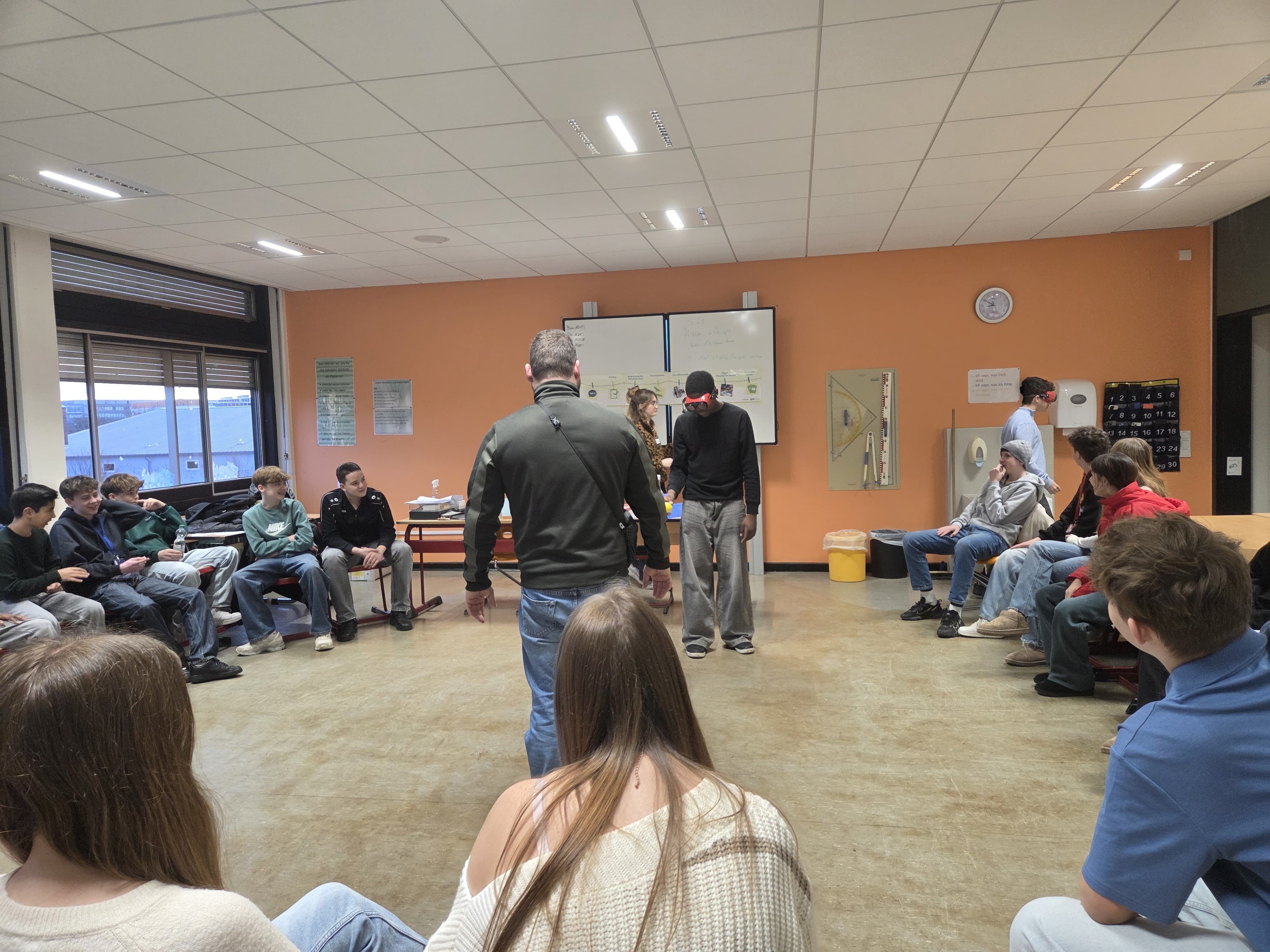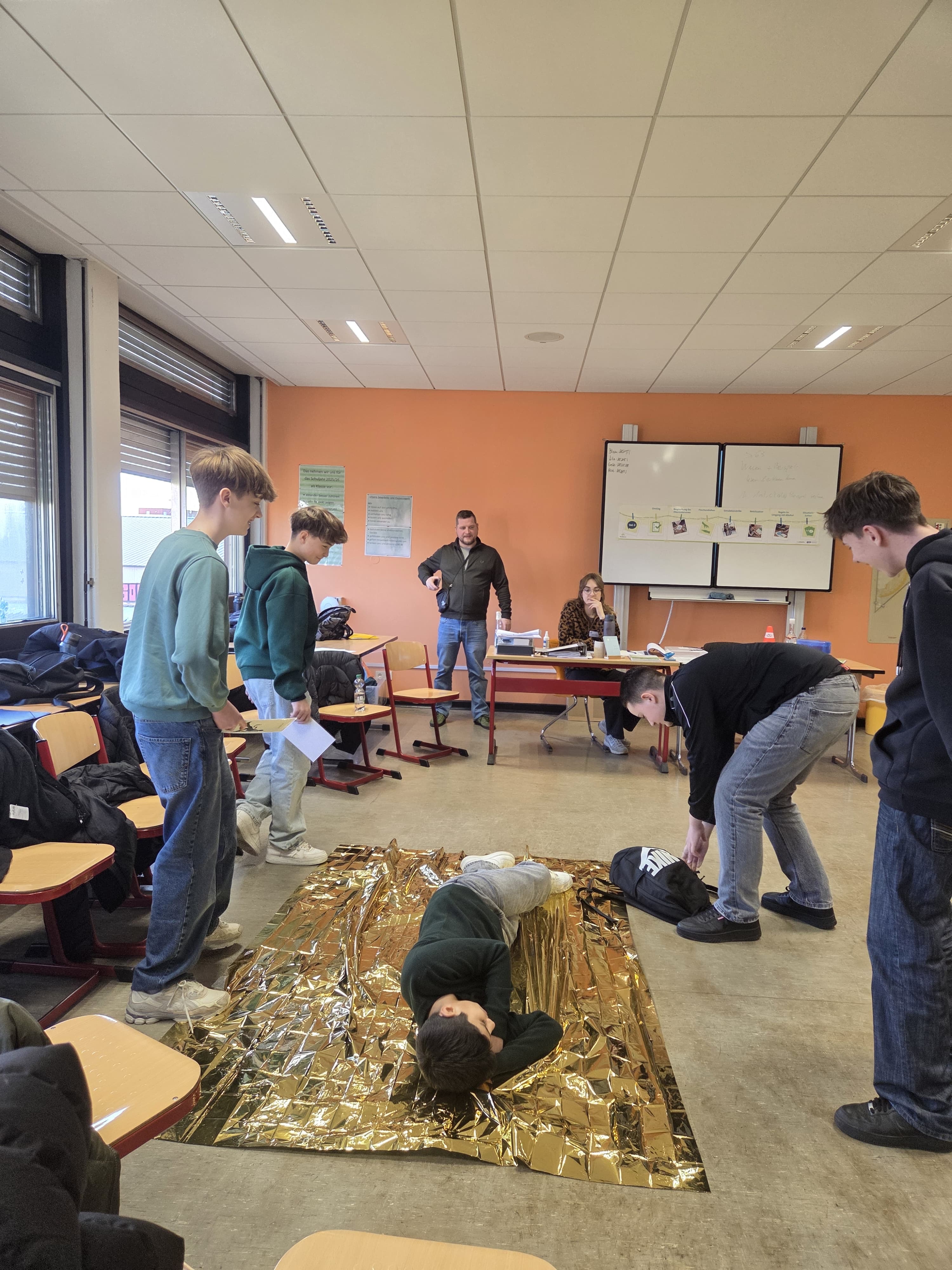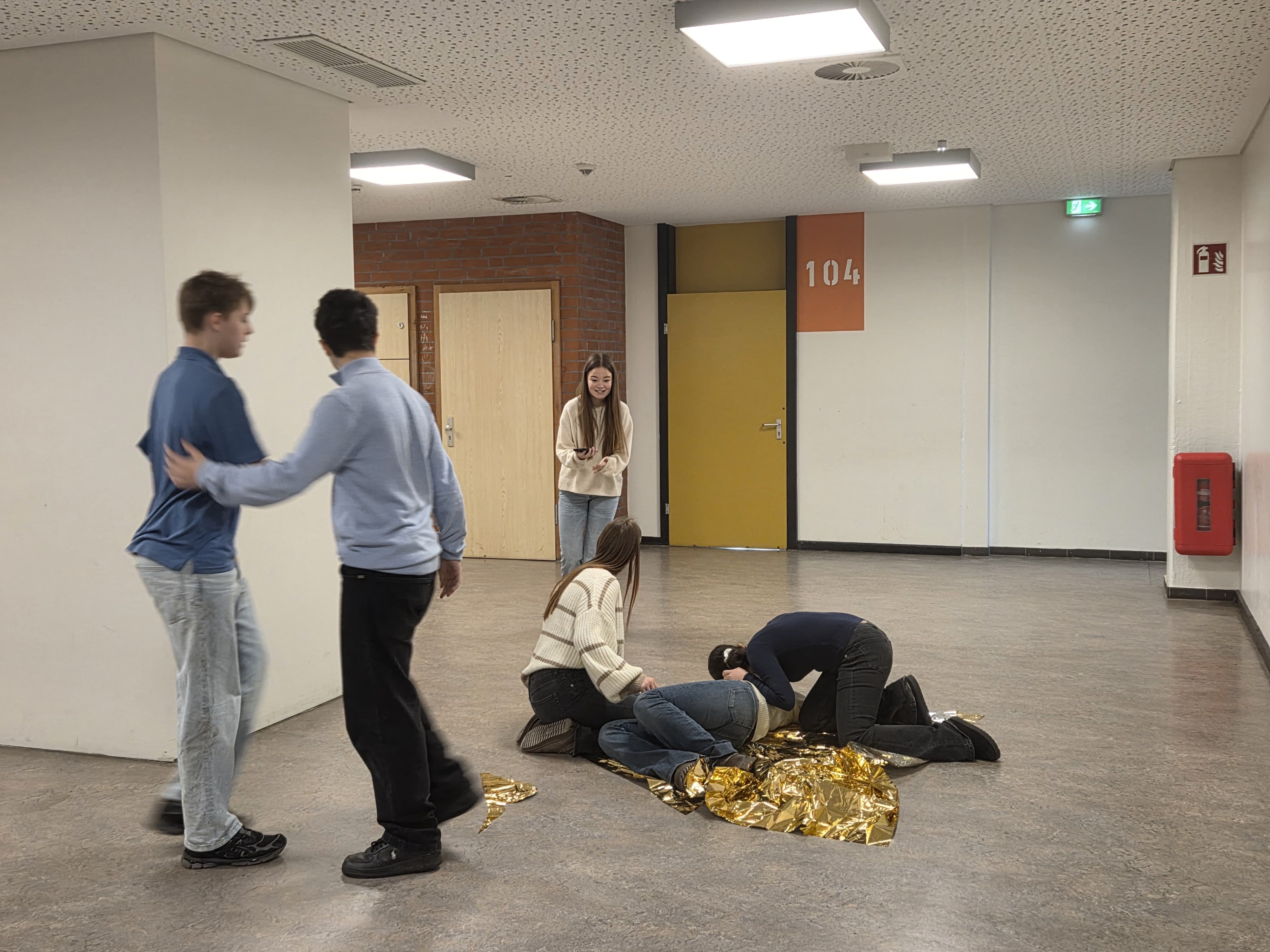 Eigene Spiele wurden erfunden und es gab sogar eine Erste Hilfe Einheit, die tatkräftig von einigen anwesenden Schulsanitäter:innen unterstützt wurde.Doch das klare Highlight war der praktische Teil, bei dem deutlich wurde, wie stark Alkohol die Wahrnehmung und Koordination beeinflussen kann. Die Teilnehmenden durften einzeln eine Simulationsbrille aufsetzen, mit welcher sie anschließend einen Parkour durchlaufen mussten. Ein Schüler sagte, er habe die Brille total unterschätzt und es wäre ganz ungewohnt, eine solche Sicht zu haben. Ganz sicher würde er dies nur aus Spaß wiedermachen und in keiner Ernstsituation erleben wollen. Diese Erfahrung blieb vielen besonders im Gedächtnis und regte zum Nachdenken an. Insgesamt war das Alkoholprojekt eine abwechslungsreiche und informative Erfahrung, die gezeigt hat, wie wichtig es ist, sich mit dem Thema Alkohol kritisch auseinanderzusetzen.