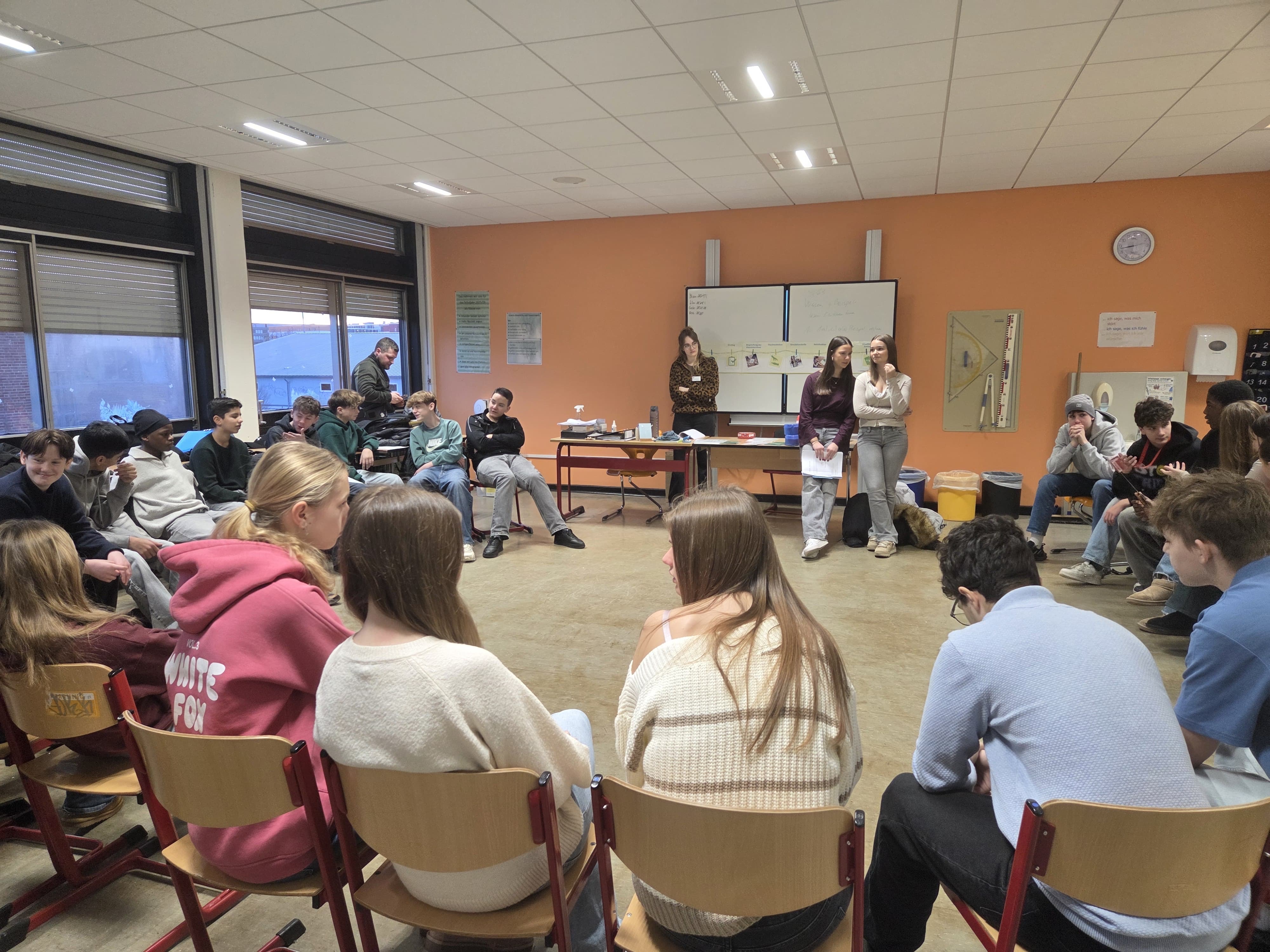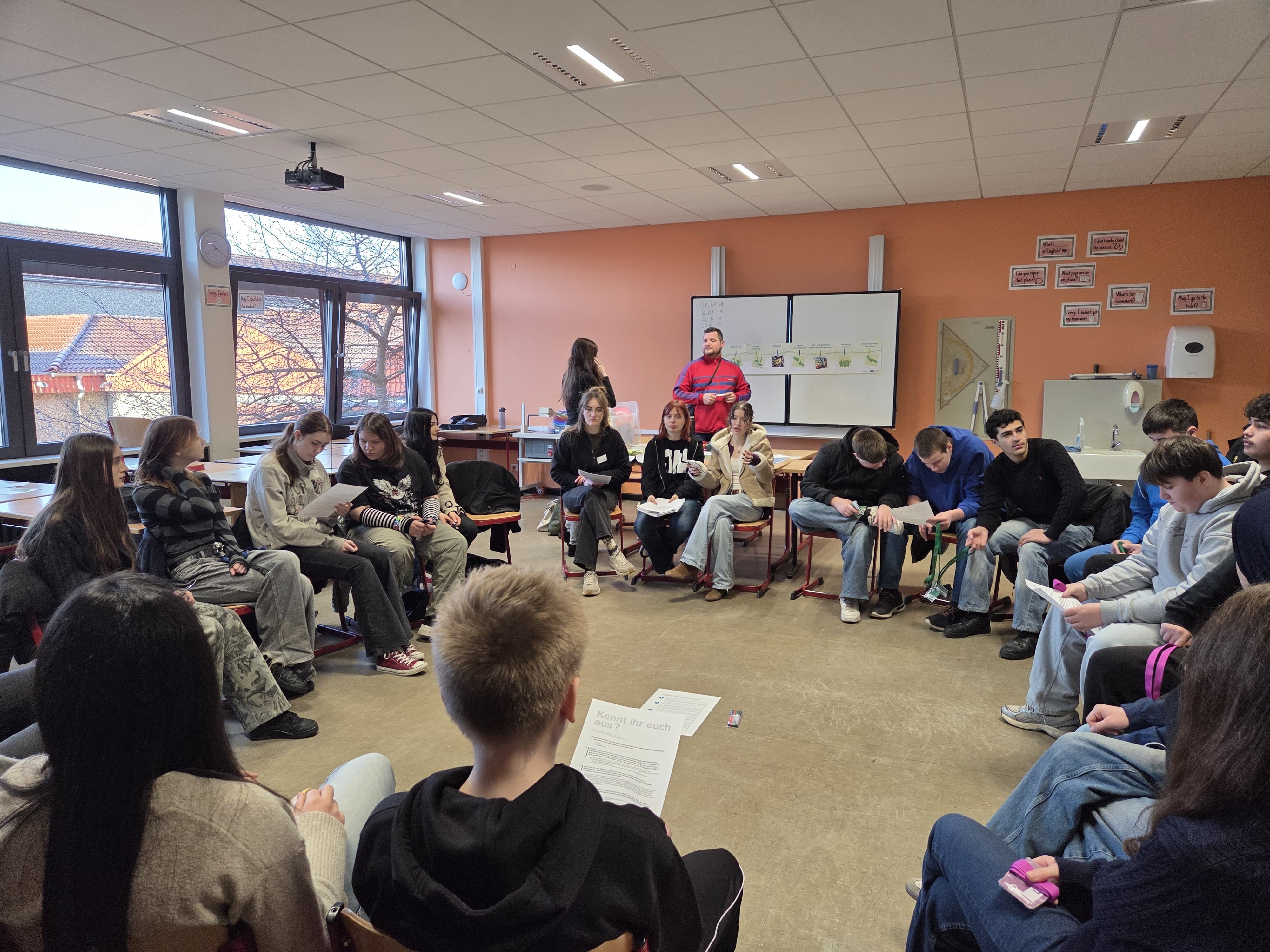 Geleitet haben das Projekt Frau Pfennig und Herr Potthoff, die dabei von einigen Schüler:innen aus der E-Phase unterstützt worden sind. Wir haben uns das mal genauer angesehen.Gearbeitet wurde oft im Stuhlkreis, damit sich die Schüler:innen offen austauschen konnten. Durch Diskussionen, Fragen und Beispiele konnten die Schüler ihre Meinungen und Erfahrungen äußern.Besonders spannend war der interaktive Teil des Projekts. In Gruppen wurden verschiedene Situationen besprochen, wie zum Beispiel über Partys, Gruppenzwang und Alternativen zu Alkohol. Beispielsweise durften die Schüler:innen sich in einer Situation mit den Kindern Tom und Lisa wiederfinden, die eine Party planen wollten.