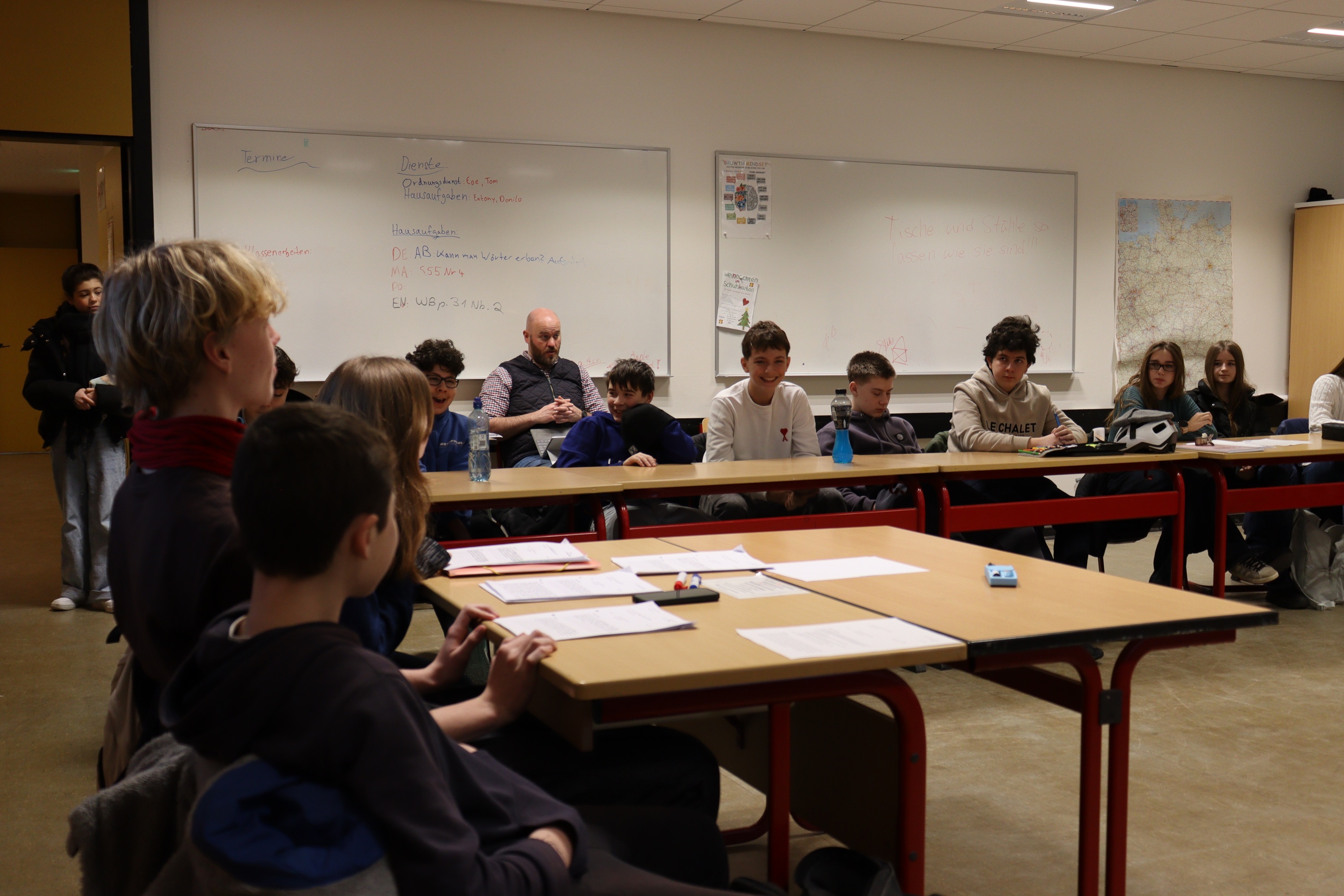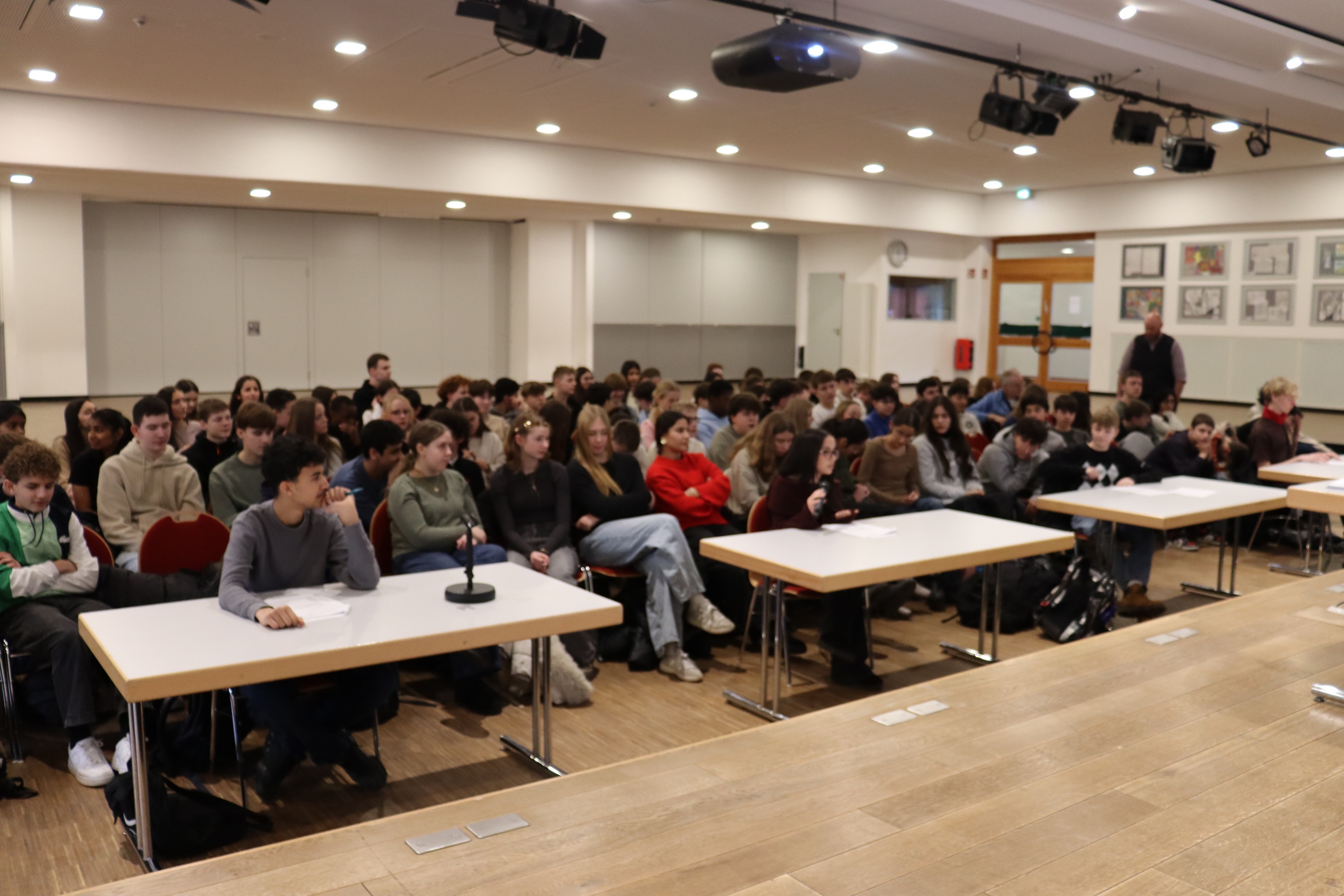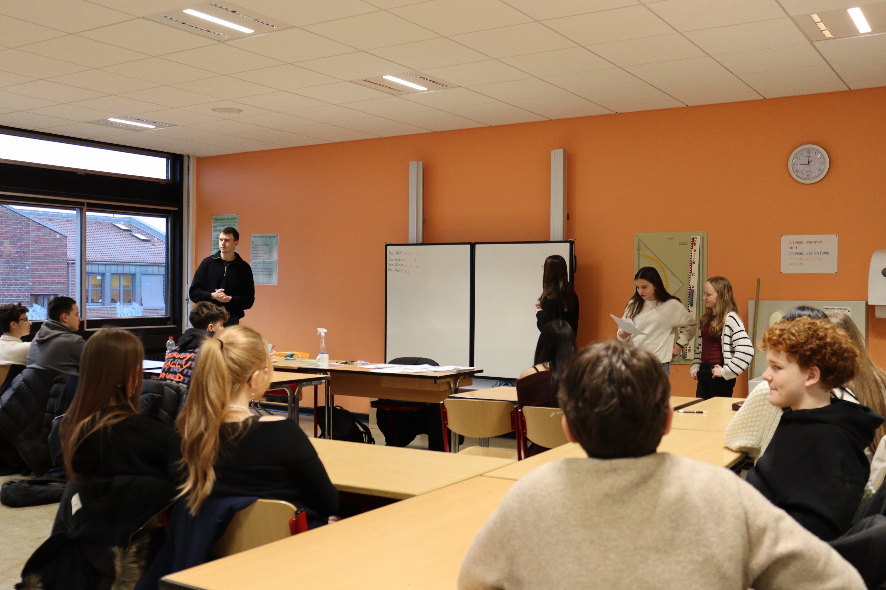 Beim Projekt „Kommunalpolitik in Laatzen“ durften unsere 8. Klassen für zwei Tage in die Rolle von Politiker:innen schlüpfen. In Rollenspielen, Reden und Diskussionen überlegten sie, wie man Laatzen verbessern kann: von moderneren Schulen über neue Spielplätze bis zu besseren Busverbindungen. In Ausschüssen wurde diskutiert, abgestimmt und entschieden, welche Ideen realistisch sind. Beim Zusammentreffen mit den Politiker:innen (Ernesto Nebot-Pomar und Frederike Otte) stellten die Schüler:innen ihre Anträge vor und bekamen ehrliches Feedback. Viele waren überrascht, wie schwierig Entscheidungen sein können.