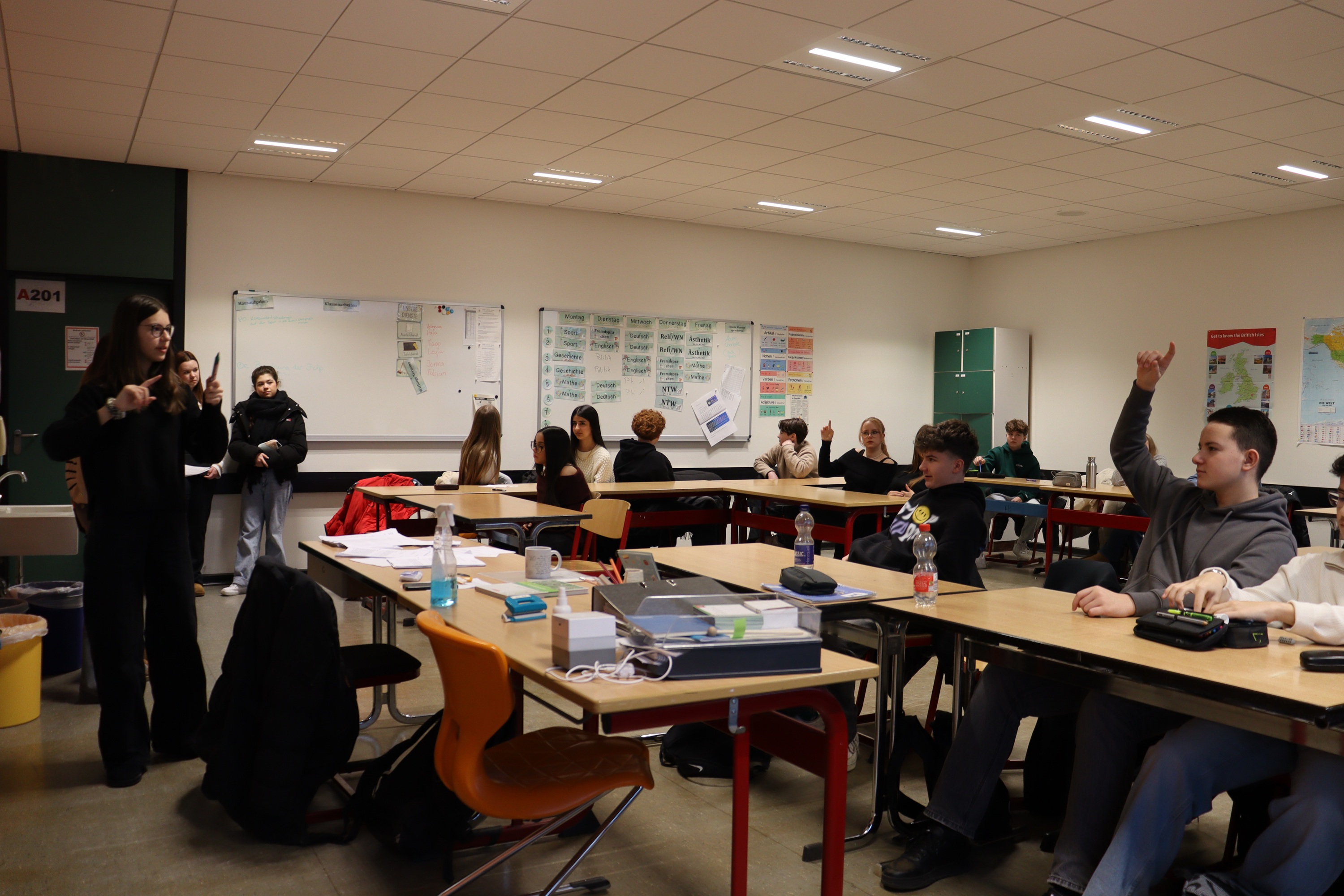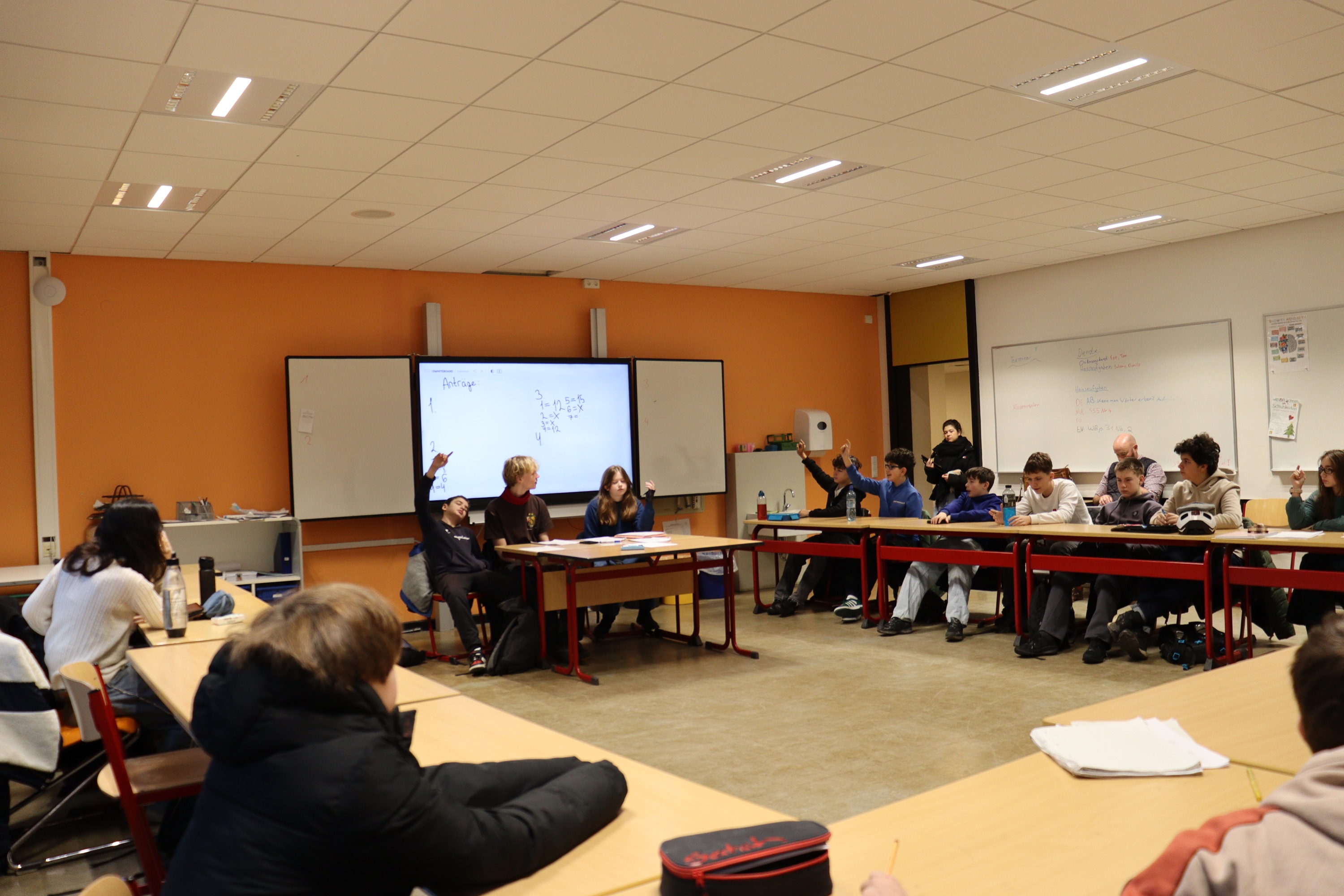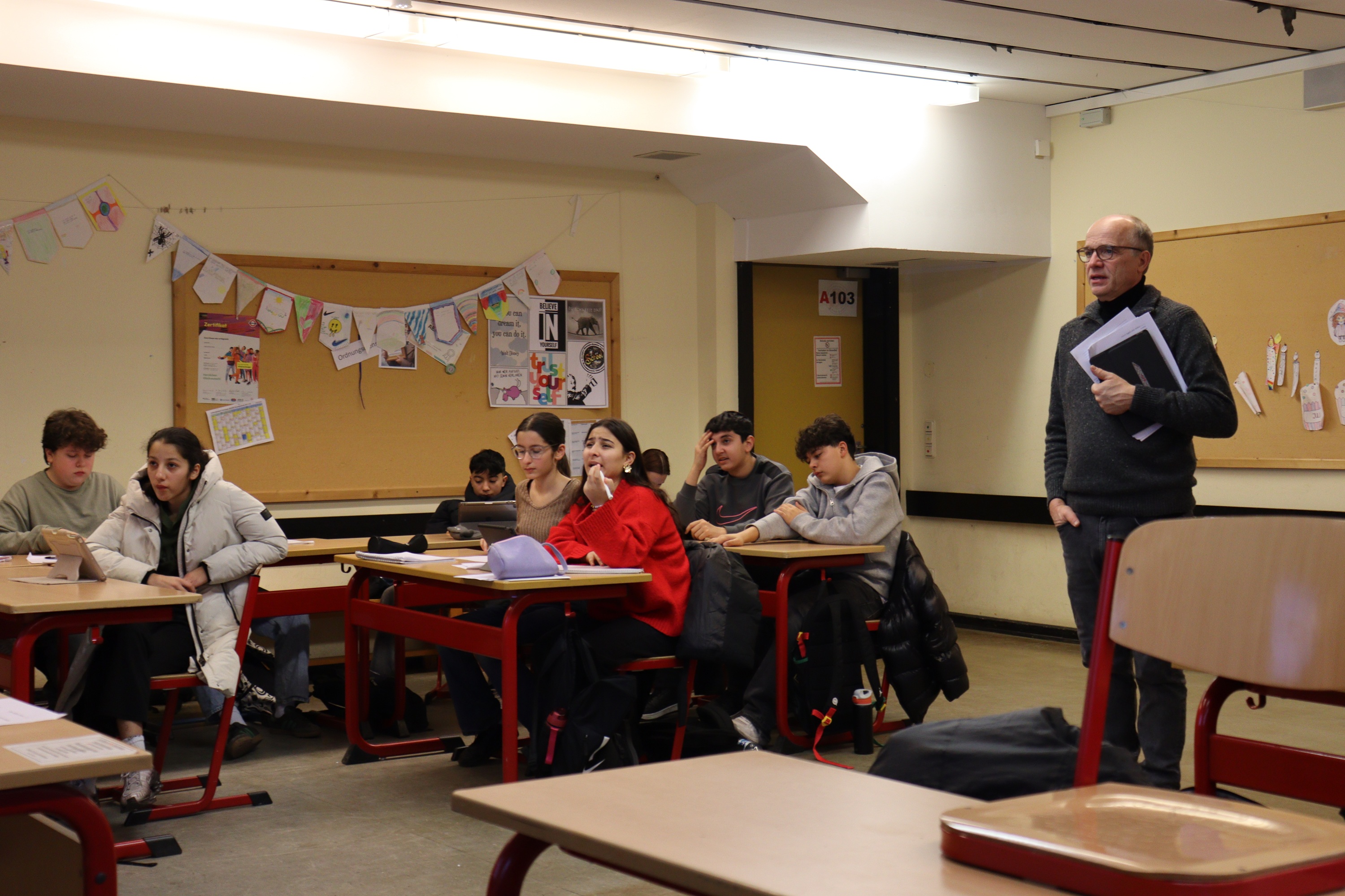 Beim Projekt „Kommunalpolitik in Laatzen“ durften unsere 8. Klassen für zwei Tage in die Rolle von Politiker:innen schlüpfen. In Rollenspielen, Reden und Diskussionen überlegten sie, wie man Laatzen verbessern kann: von moderneren Schulen über neue Spielplätze bis zu besseren Busverbindungen. In Ausschüssen wurde diskutiert, abgestimmt und entschieden, welche Ideen realistisch sind. Beim Zusammentreffen mit den Politiker:innen (Ernesto Nebot-Pomar und Frederike Otte) stellten die Schüler:innen ihre Anträge vor und bekamen ehrliches Feedback. Viele waren überrascht, wie schwierig Entscheidungen sein können.