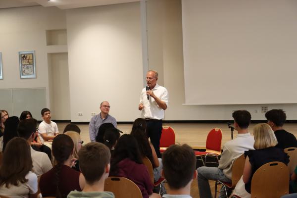 Matthias Miersch, der in ein paar Monaten 57 Jahre alt wird, hat nach dem Abitur Rechtswissenschaft (Jura) in Hannover studiert und wurde danach Rechtsanwalt. Sein Einstieg in die Politik nahm im Stadtrat in Laatzen seinen Anfang. Als der Stadtrat die Zuschüsse für Jugendfreizeiten streichen wollte, ging er dagegen vor, da er es als Unrecht empfand – und hatte damit Erfolg! Er wurde dann 2005 erstmals in den Bundestag gewählt und ist bis heute der Direktkandidat des Wahlkreises Laatzen-Springe. Er appelliert an die Schüler*innen, sich politisch zu engagieren und sich auch solche Aufgaben zuzutrauen.