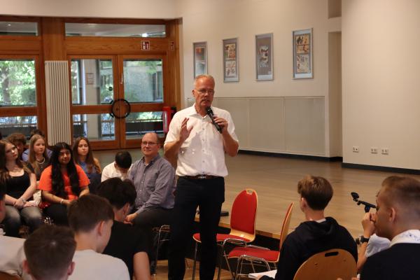 Eine Schülerin fragte Matthias Miersch, was er von der AfD halte. Er antwortete, dass er die Partei möglichst klein halten wolle und auch bereit sei, Kompromisse einzugehen. Seine Partei, die SPD, versuche oft Lösungen zu finden, auch wenn das bedeute, dass sie eigene Positionen etwas zurücknehmen müsse. Miersch erklärte, dass viele Menschen zur AfD wechseln, weil soziale Medien großen Einfluss auf politische Meinungen hätten. Besonders Jugendliche ließen sich oft durch Plattformen wie TikTok oder Instagram beeinflussen. Dort äußere sich z.B. auch die Partei ,,Die Linke“ häufig so, dass viele junge Menschen sich von ihr angesprochen fühlen und sie dann wählen würden.