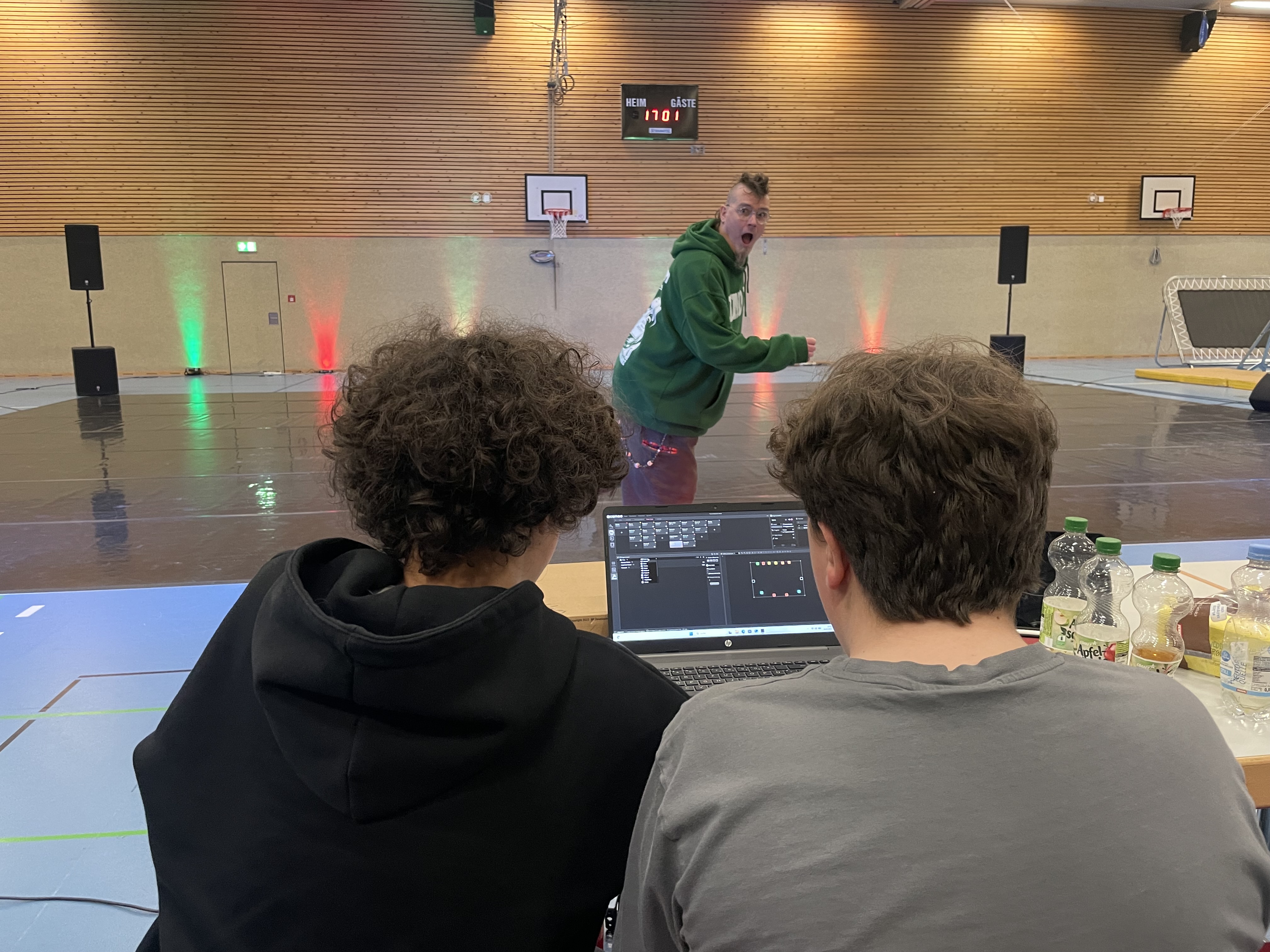 Für professionelle Ton- und Lichttechnik sorgen die Lehrer Ulrich Schmidt-Wöckener und Frederik Kiparski, zusammen mitder AG Veranstaltungstechnik!