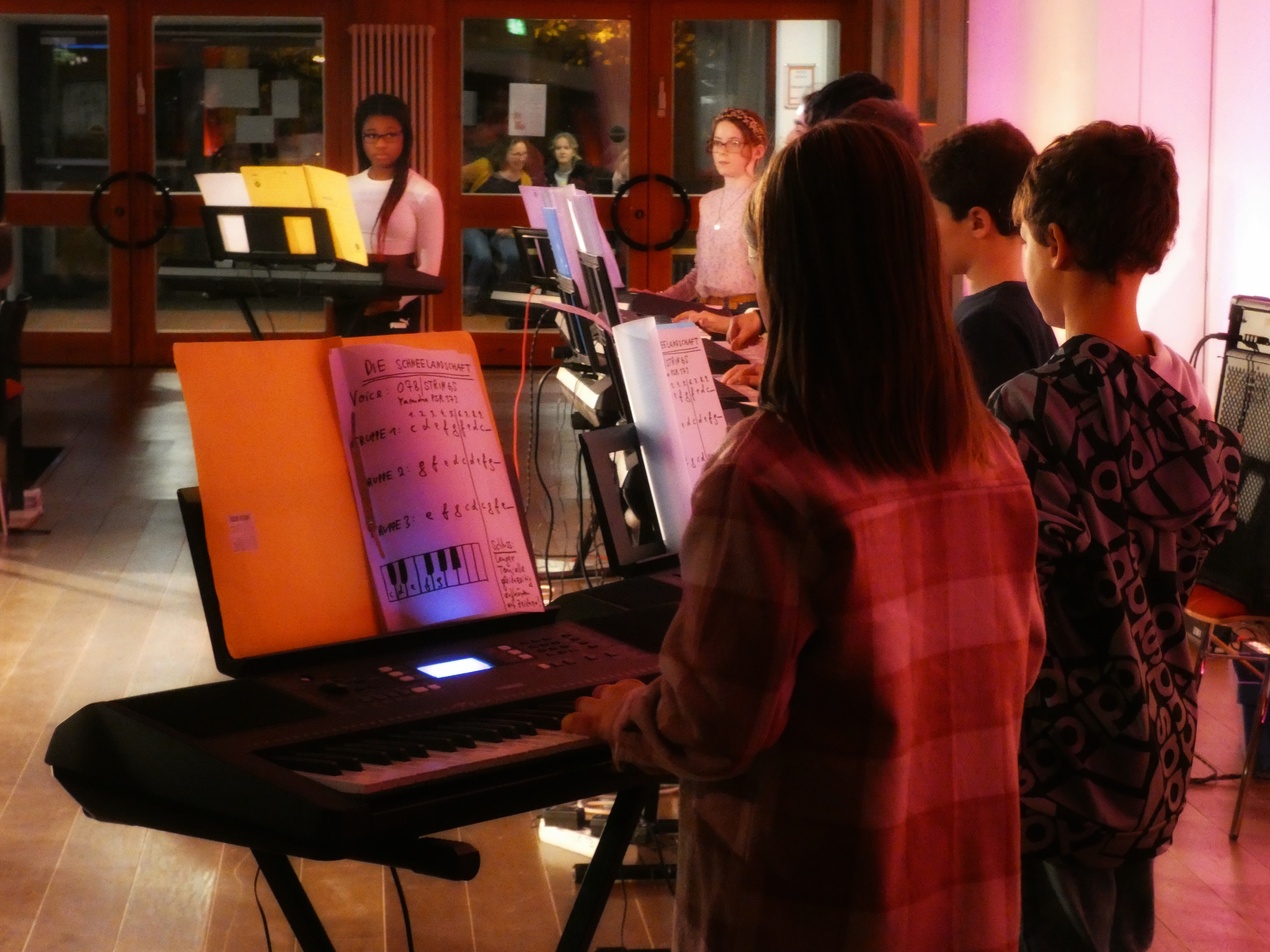 Im Keyboardkurs lernen die jungen Musiker:innen Grundlagen des Keyboardspiels. Sie spielen einfache Melodien und Arrangements.